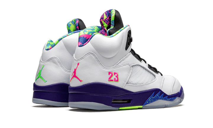 Air Jordan 5 Retro Alternate Bel-Air is a vibrant and nostalgic sneaker inspired by the iconic '90s sitcom. Featuring a cool grey upper with vibrant accents of purple, pink, and teal, it offers a stylish and eye-catching design. With exceptional comfort and performance, it's a must-have for sneaker enthusiasts and fans of the Fresh Prince of Bel-Air.
